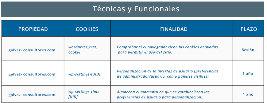 En el caso de las cookies técnicas, es decir, aquellas que resultan imprescindibles para navegar por esta web y recibir el servicio ofrecido a través de ella, el usuario decide visitar la página web y utilizar sus servicios; formando parte indisoluble de los servicios que tácitamente el usuario desea conocer o/y contratar. Por ende, la legitimación para uso tiene su base en el art. 6.1.f) del RGPD, al ser el tratamiento necesario para la satisfacción de intereses legítimos perseguidos por el responsable del tratamiento; no pudiendo sin ellas gozar el usuario de una experiencia satisfactoria, viéndose afectada la reputación de la entidad y mermándose la efectividad de la promoción de los servicios ofertados.